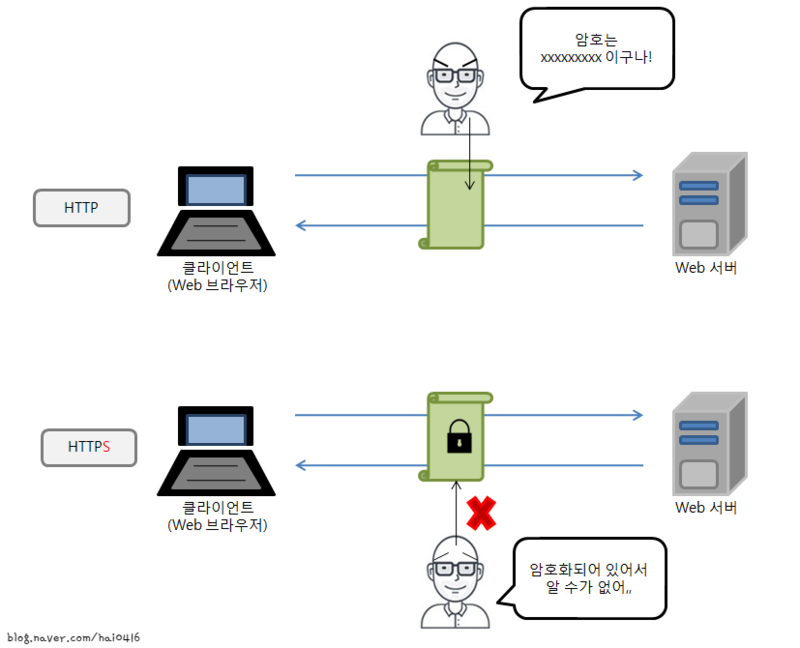 이런 상황을 방지하기 위해 HTTPS를 웹서버에 적용 시킵니다.