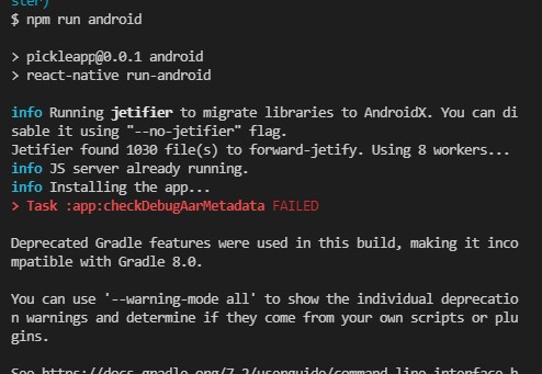 npm i react-native-splash-screen 후에 발생한 애러이지만, 보편적으로 기능을 추가할 때, 두루 발생하는 애러처럼 보여집니다.